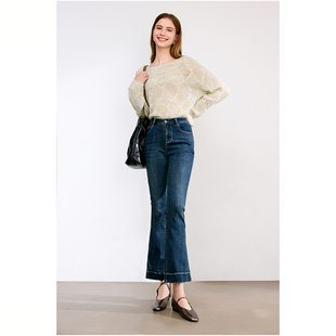女牛仔裤 高腰微喇裤 2025年夏季 新款 betu百图美式 小个子九分裤 修身