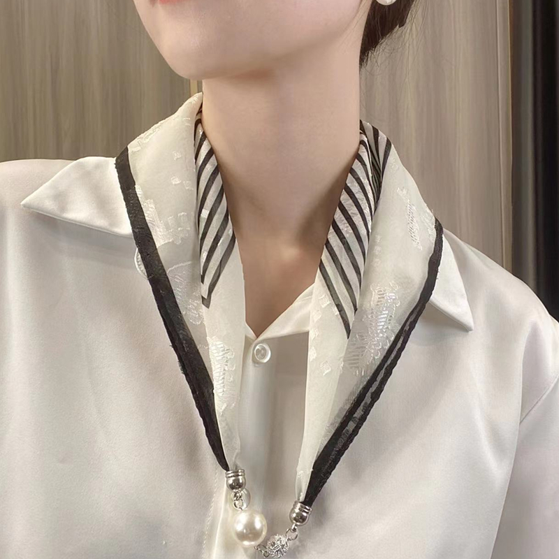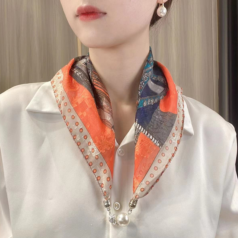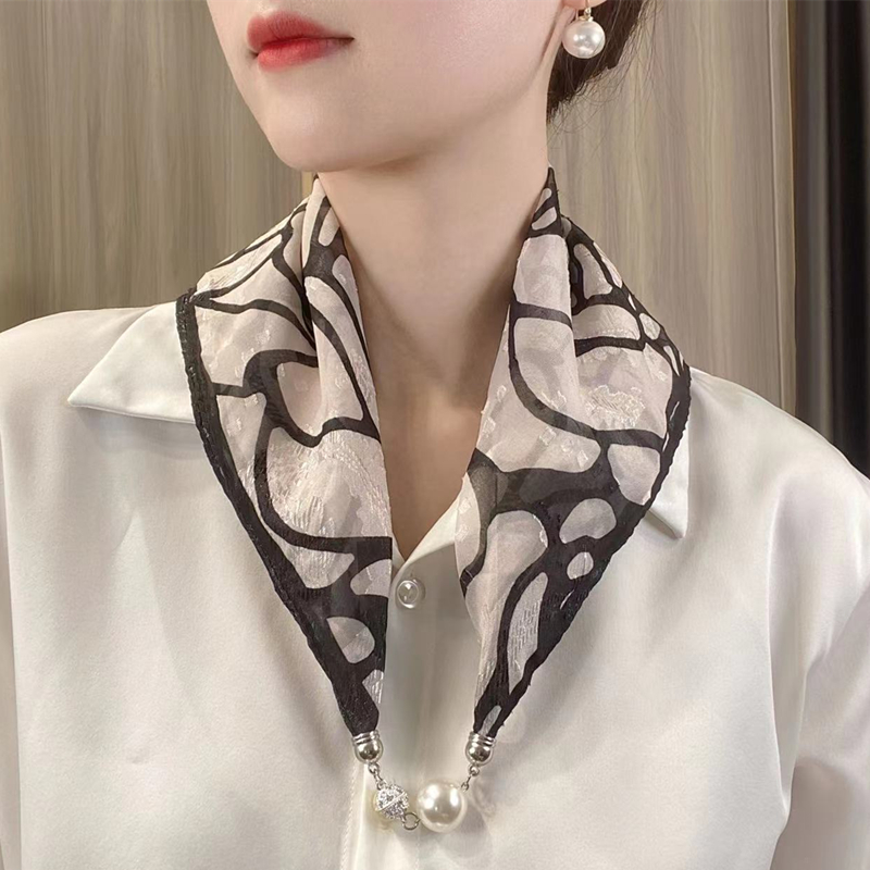 薄款 磁吸扣丝巾新款 饰项链三角巾夏季 洋气方巾护颈装 百搭时尚