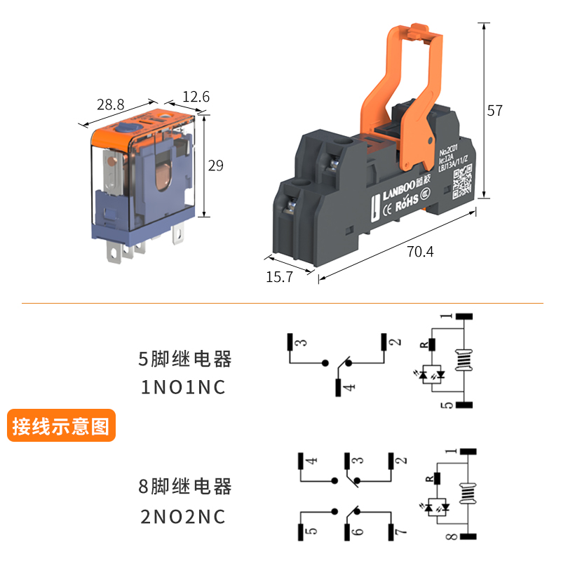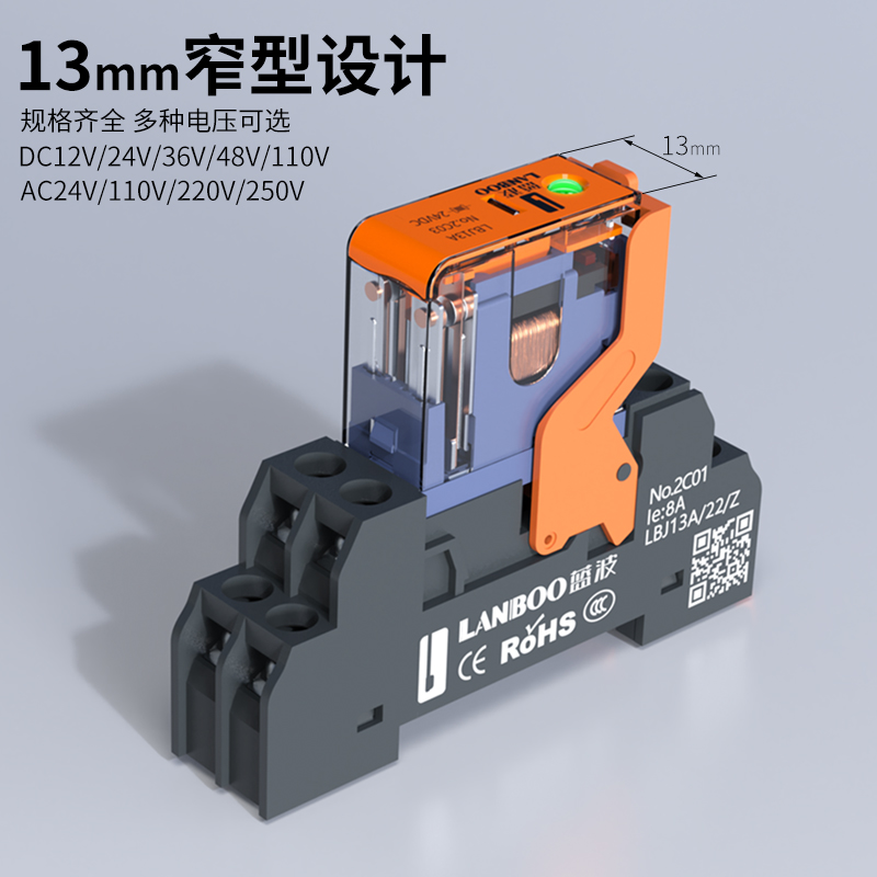 蓝波J13A中间继电器窄款 12V24V220V多脚位5脚8脚电流控制器继电器