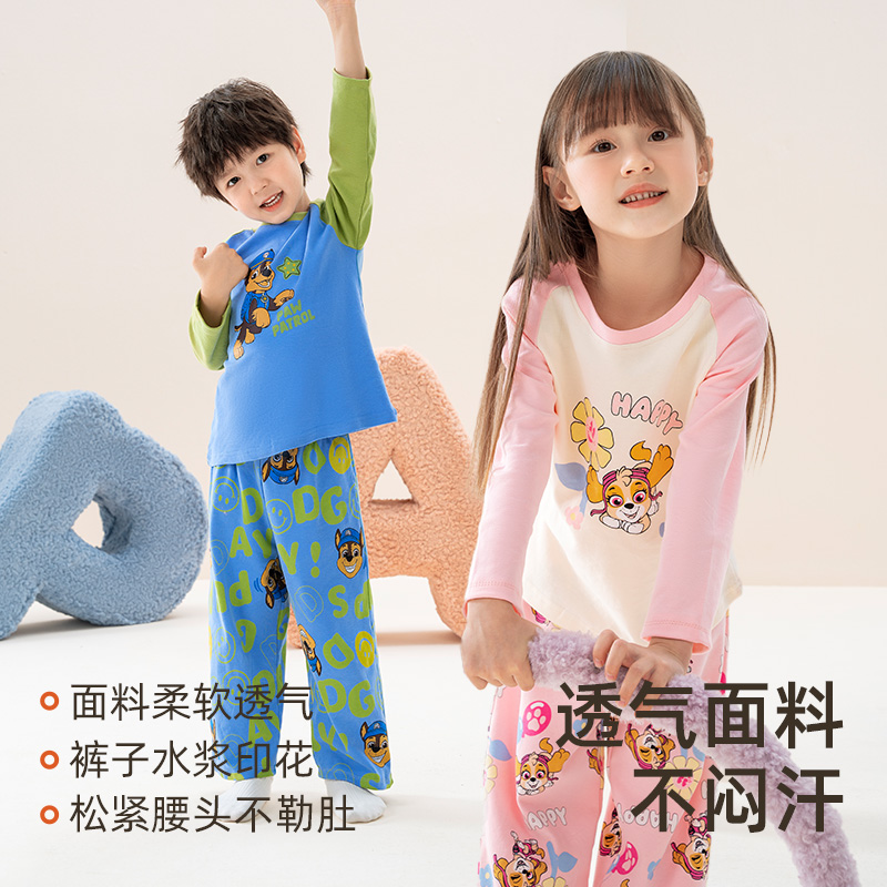 空调服2025新 长袖 汪汪队男童睡衣春秋儿童纯棉家居服套装 A类薄款