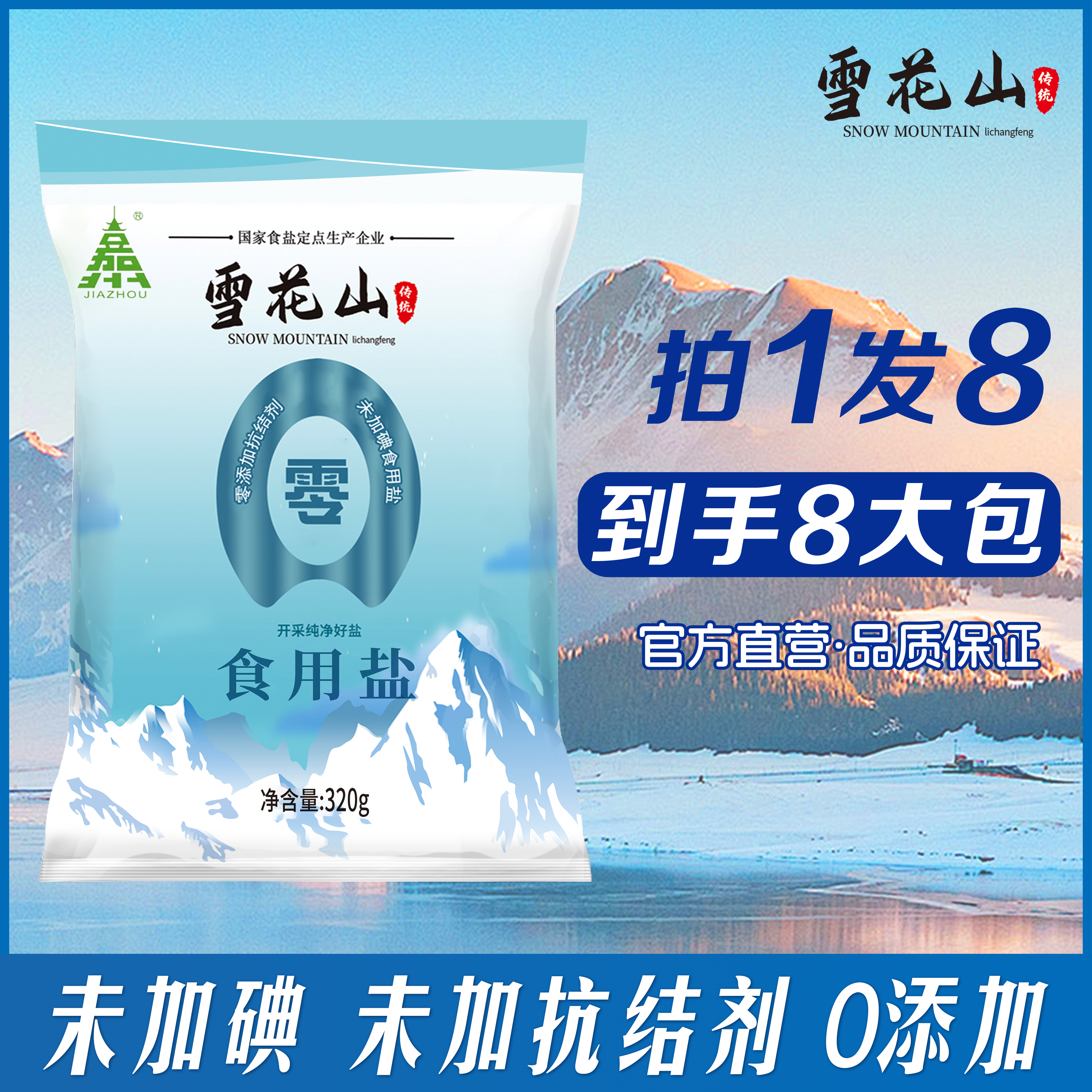 雪花山食用盐家用食用盐不加碘320g 8包无抗结剂零添加炒菜批发整