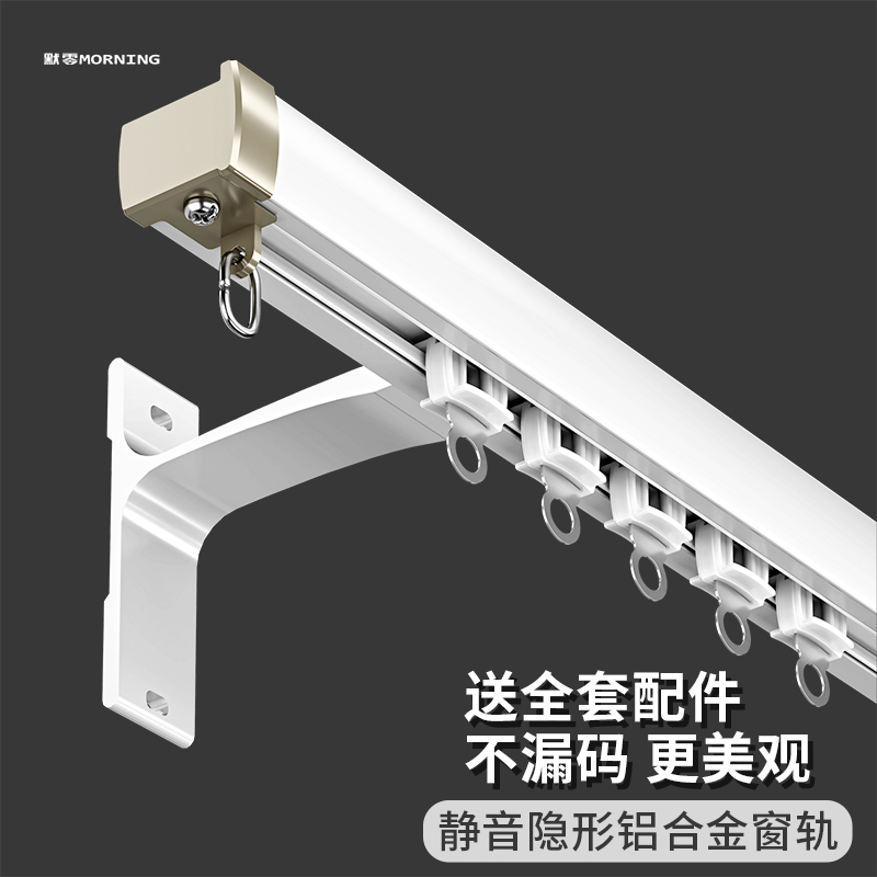 卧室单双轨 打孔安装 防漏光铝合金窗帘轨道静音滑轨顶侧装 隐藏式