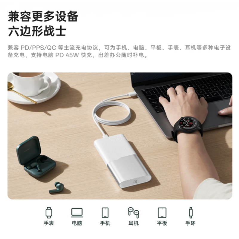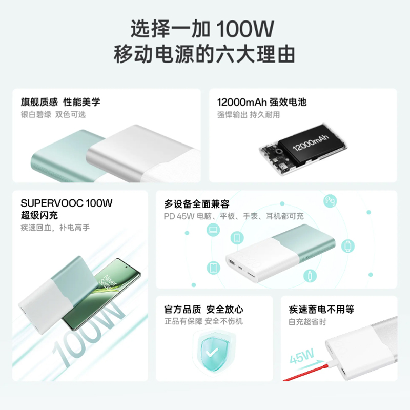 一加100W超级闪充移动电源12000mAh超大容量可上飞机PD45W适用苹果 平板快充充电一加100w充电宝 电脑