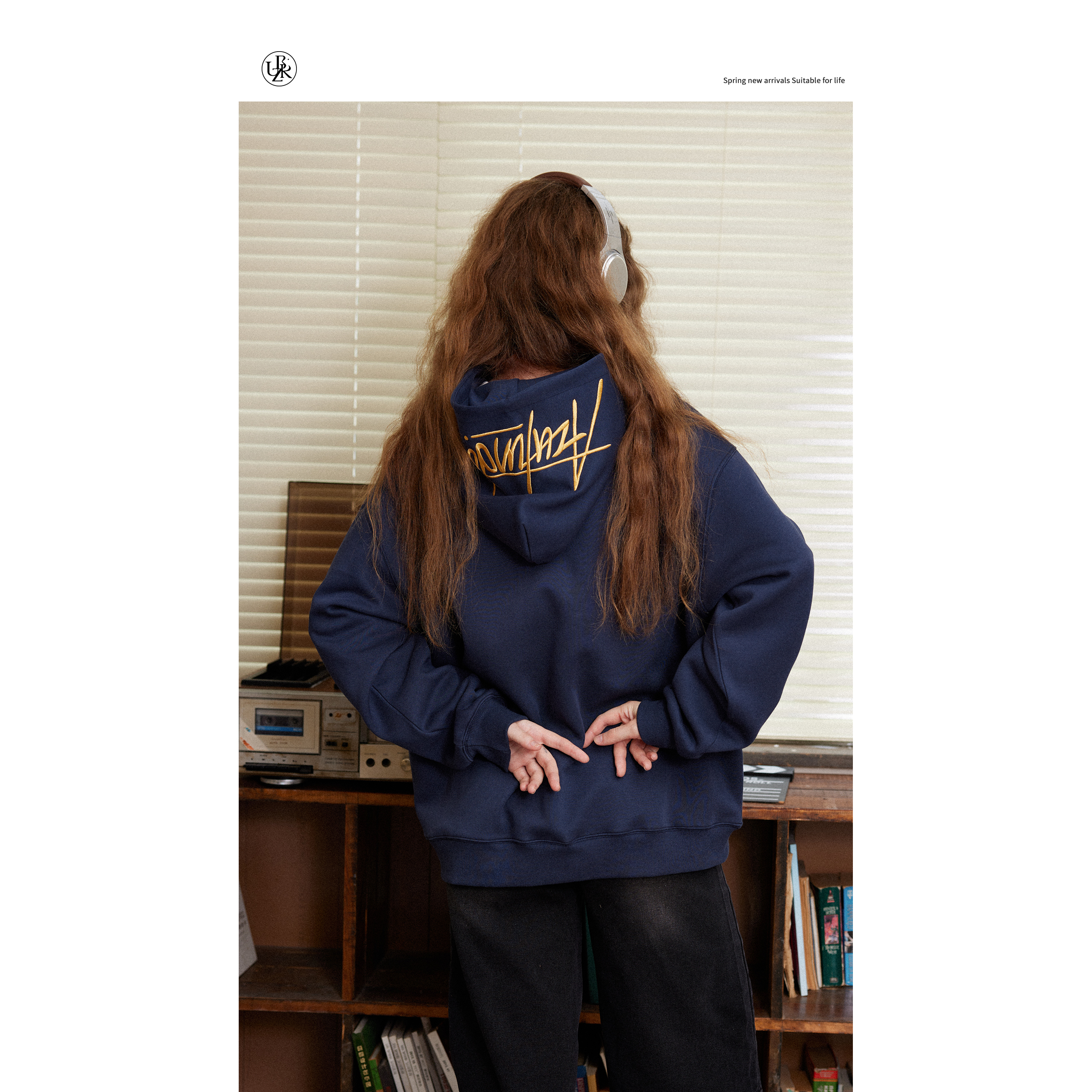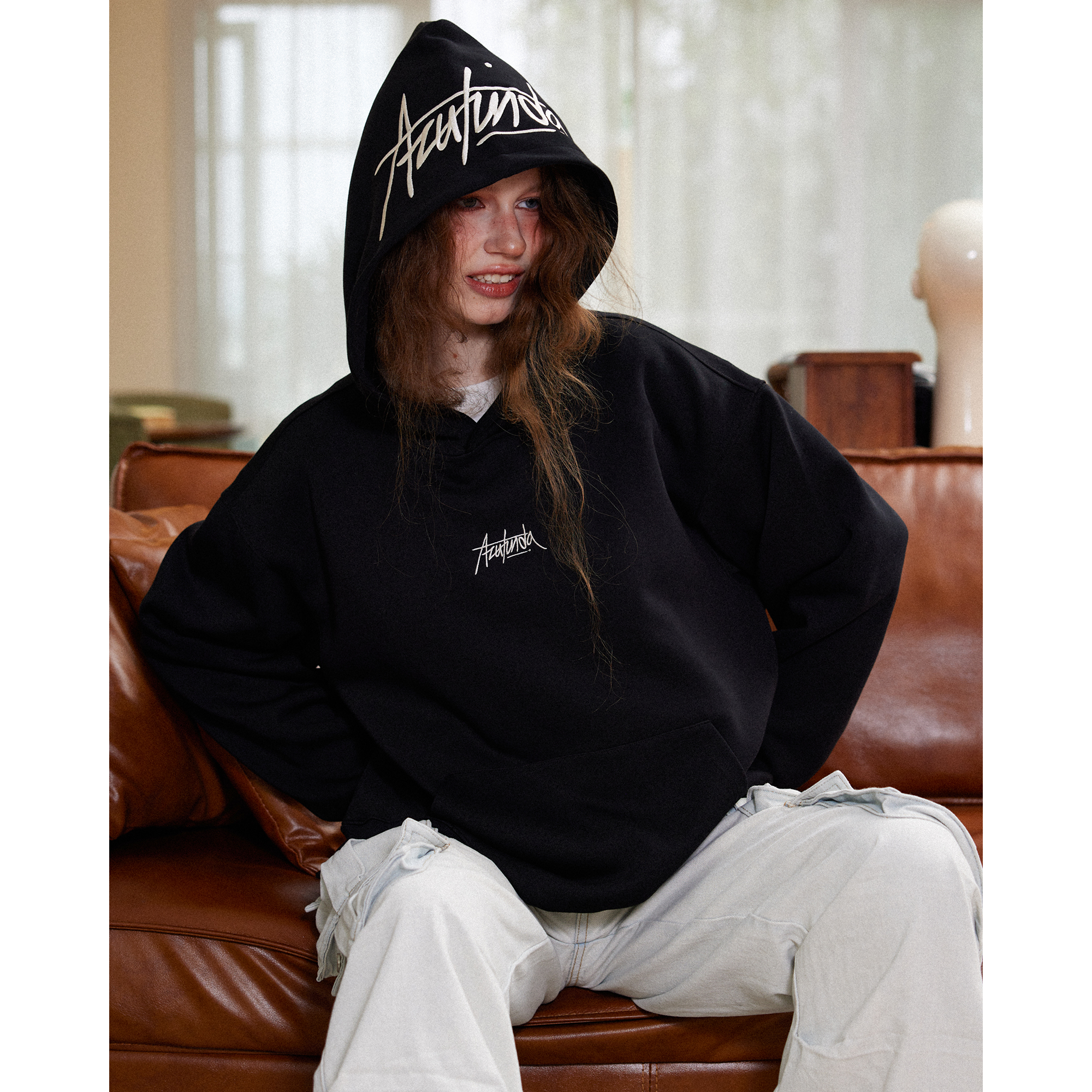 Beikastudios黑色卫衣女连帽美式 复古410G刺绣24秋加绒加厚外套