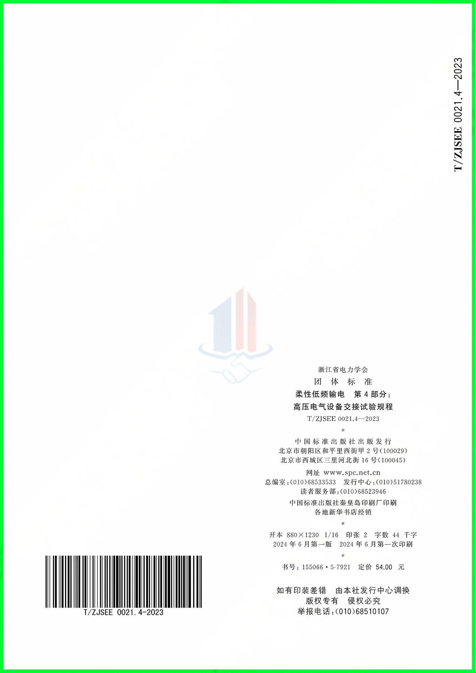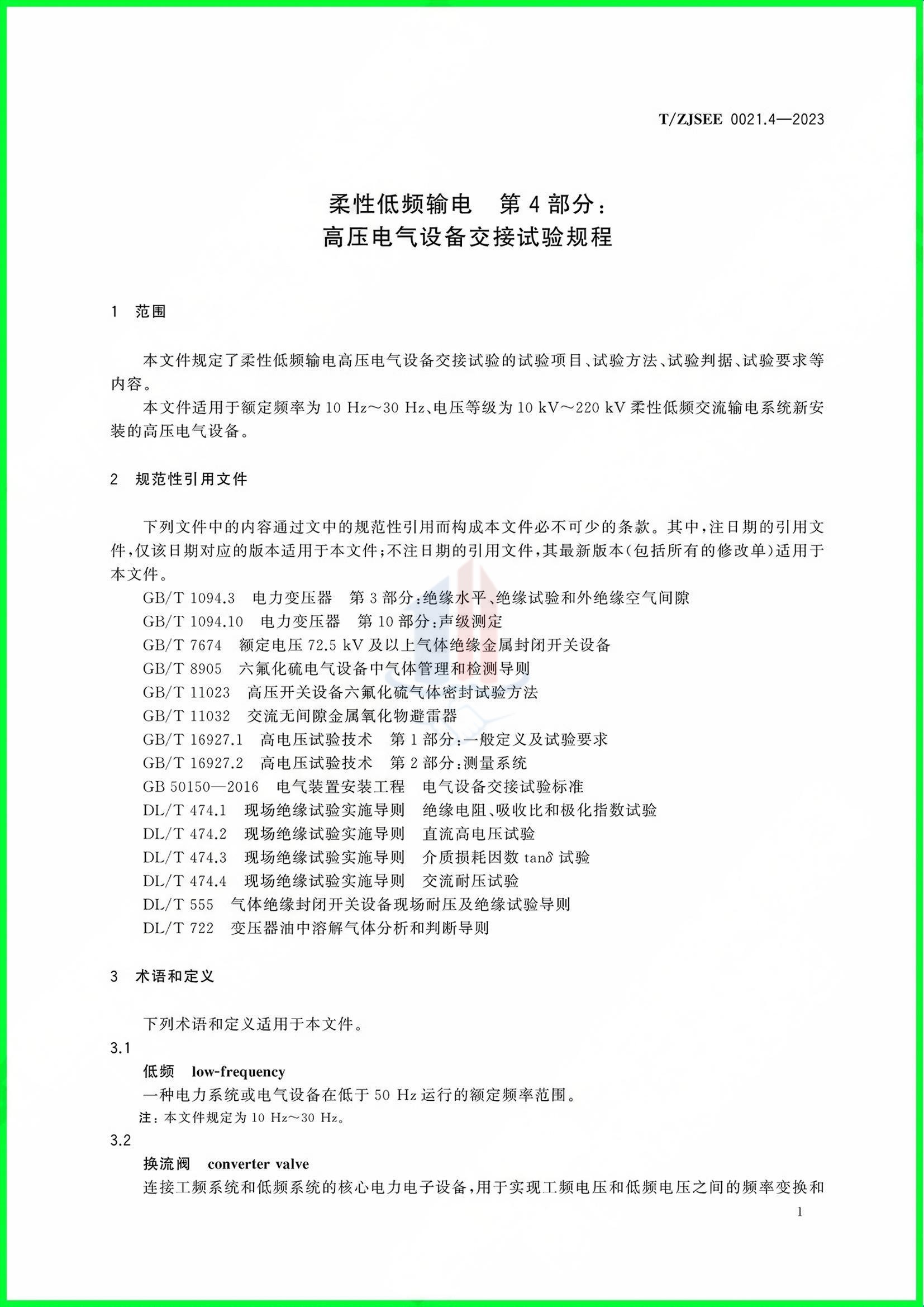 2023柔性低频输电 0021.4 第4部分:高压电气设备交接试验规程 ZJSEE