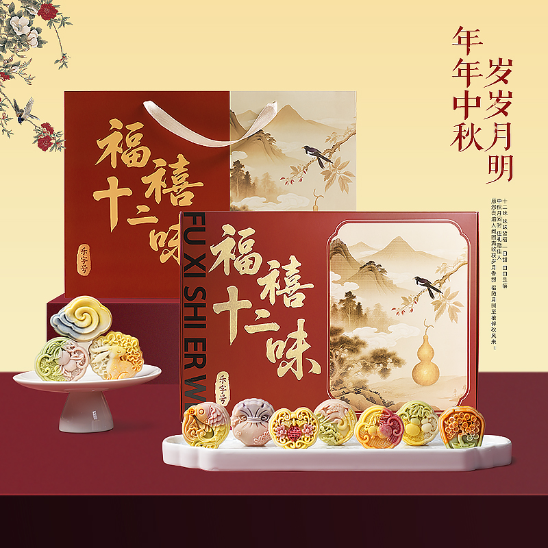 节日送礼佳品 款 乐字号福禧十二味台式 桃山皮流心月饼2025礼盒装