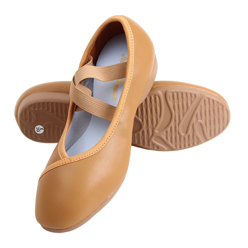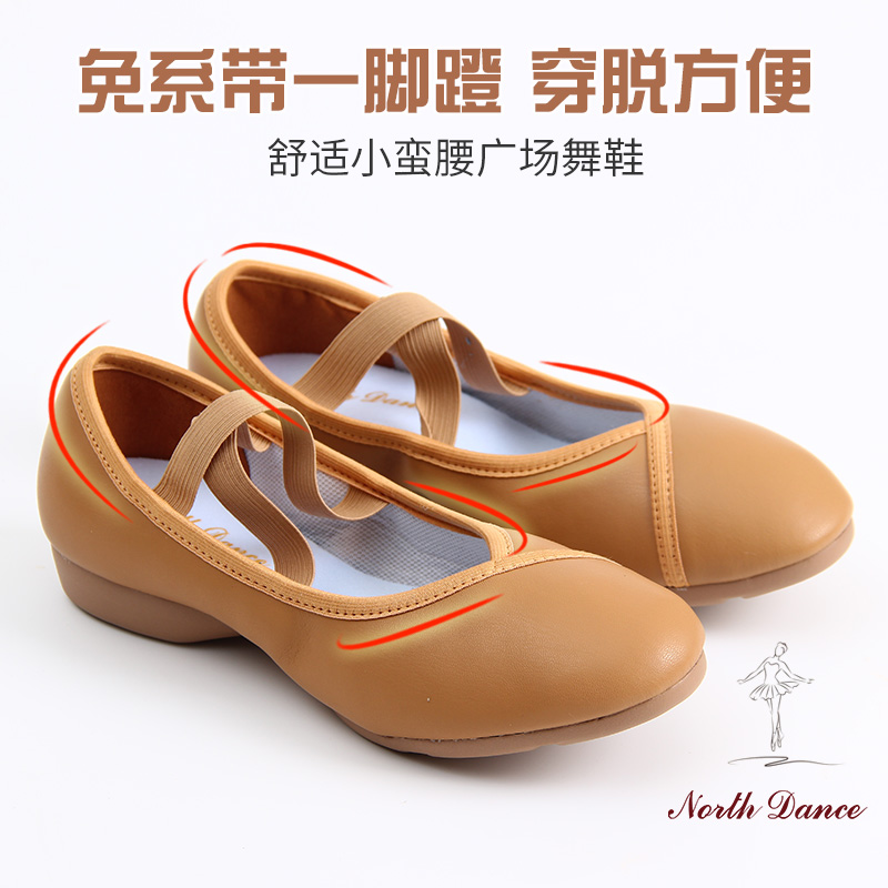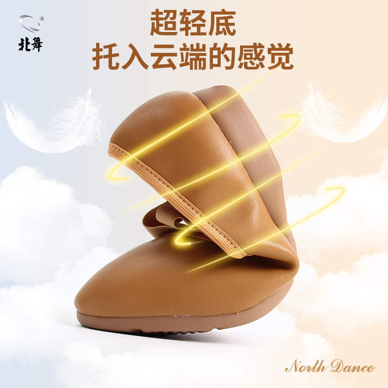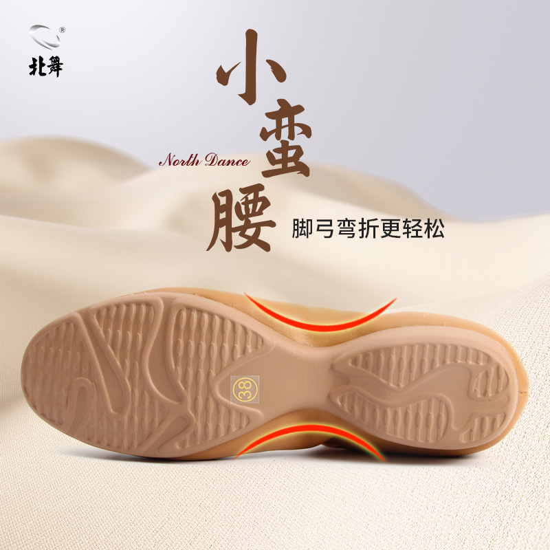 棕色民族古典舞鞋 女成人练功鞋 真皮软底教师鞋 北舞羊皮带跟舞蹈鞋
