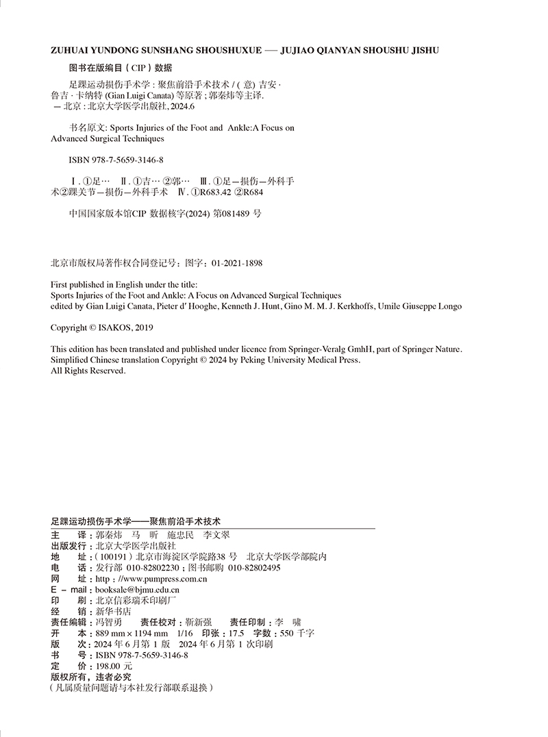 足踝部韧带 软骨 肌腱和骨骼运动损伤 足踝运动损伤手术学 北京大学医学出版 郭秦炜等主译 治疗 9787565931468 聚焦前沿手术技术
