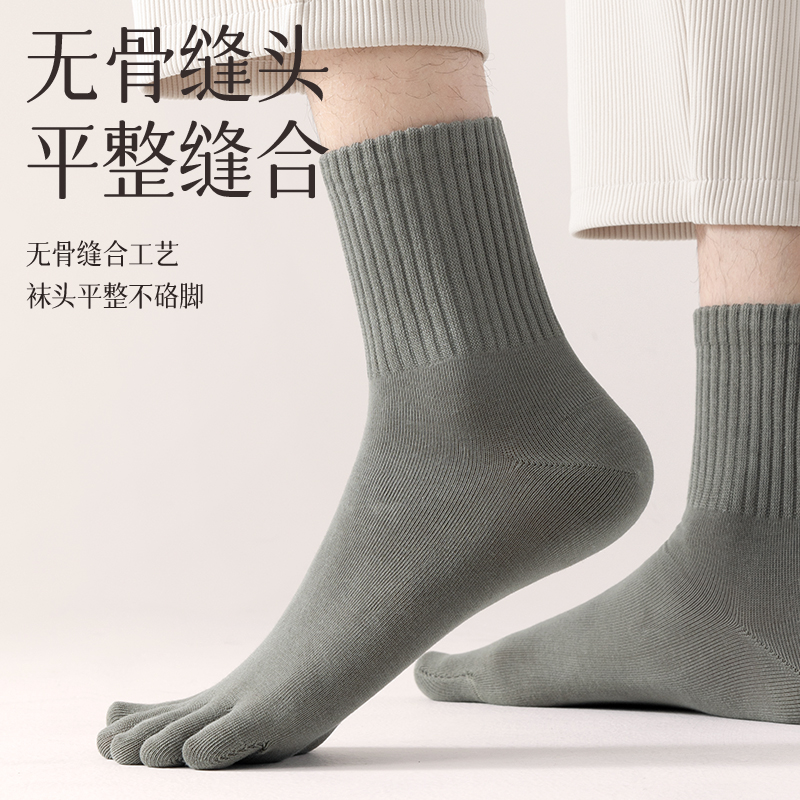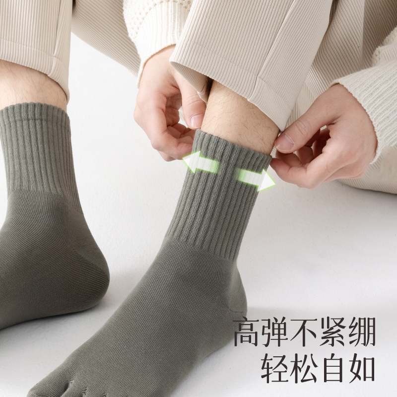 五指袜子男士 100%纯棉线长袜抗菌防臭吸汗透气分趾袜 中筒袜秋冬季