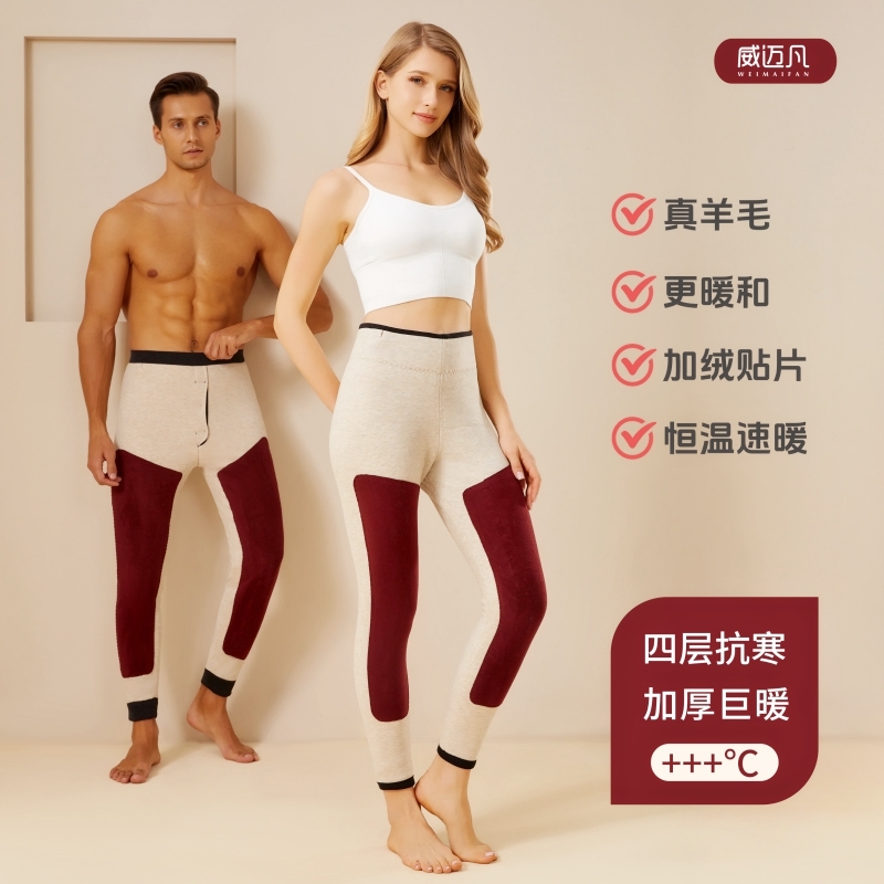 棉裤 加厚加绒高腰内穿打底秋裤 冬 男女士藏红花保暖裤 威迈凡羊毛裤