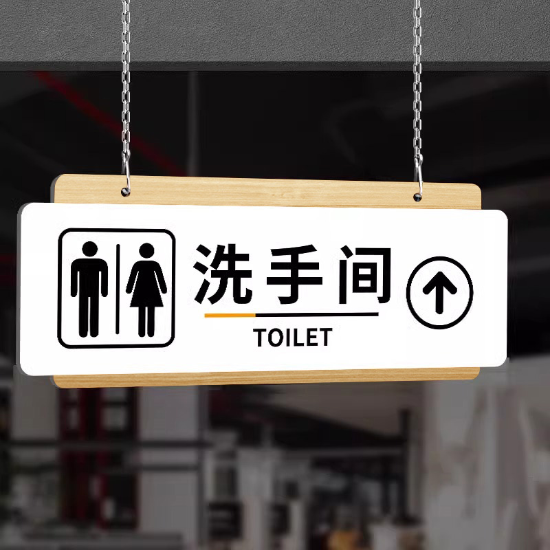 高档悬挂式 洗手间标识牌双面吊挂卫生间箭头指示牌商超写字楼男女公厕指引导向牌WC吊牌亚克力标志牌门牌订制