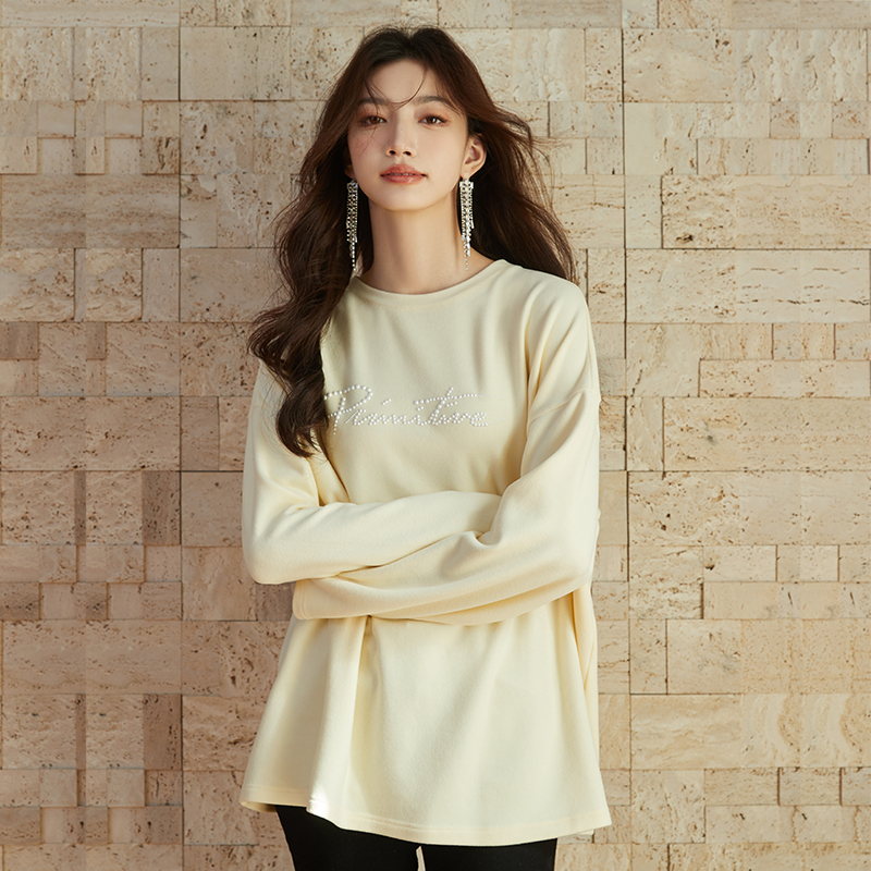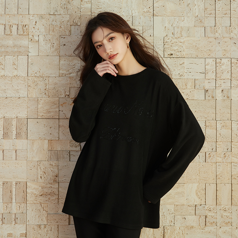 糯米T打底内搭女春秋 软糯磨毛圆领长袖 至漫ZHIMAN 重磅澳绒烫钻款