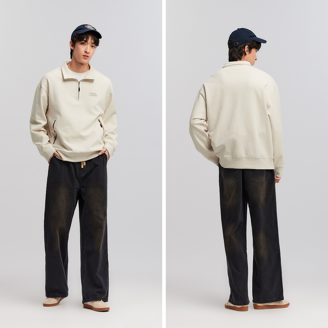 宽松卫衣男款 重磅纯棉美式 早秋穿搭上衣C 男t恤秋季 班尼路白色长袖