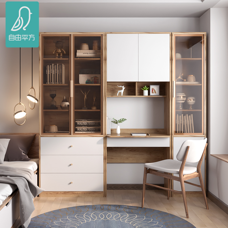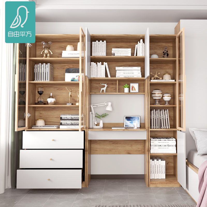 简约新款 书柜电脑桌衣柜一体连体组合带学习桌书桌小户型卧室家用