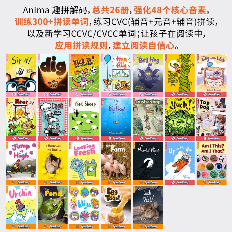 强化48个核心音素 训练300 拼读单词 文脉书局Anima CCVC 书26册 练习CVC CVCC拼读 趣味拼读解码
