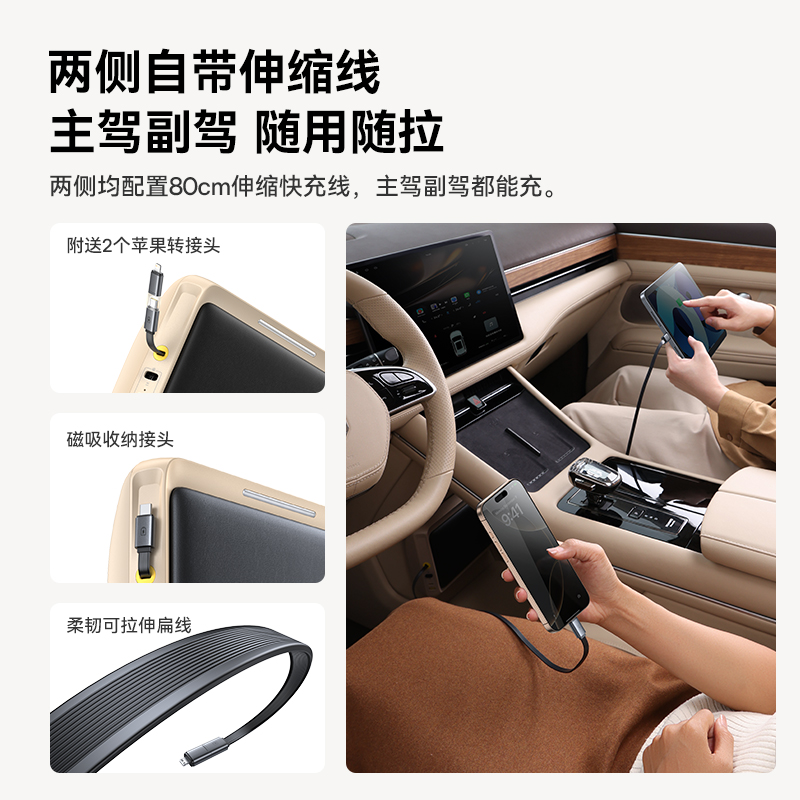 倍思车载充电器超级快充2025新款 一拖二汽车点烟器转换插头车充PD