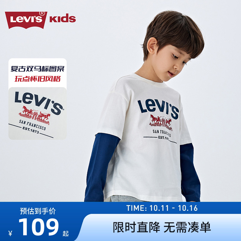 中大童纯棉上衣打底衫 李维斯儿童装 新款 t恤2025春季 柔软 男童长袖