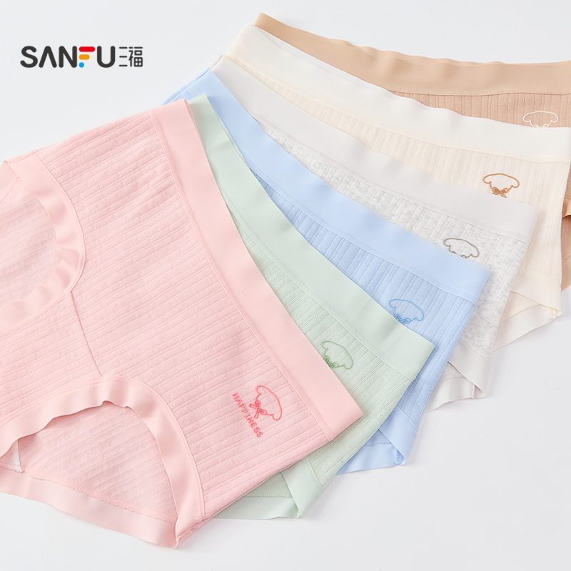 女494818 可爱滴胶小狗柔软透气半平角裤 三福 女中腰不夹臀内裤