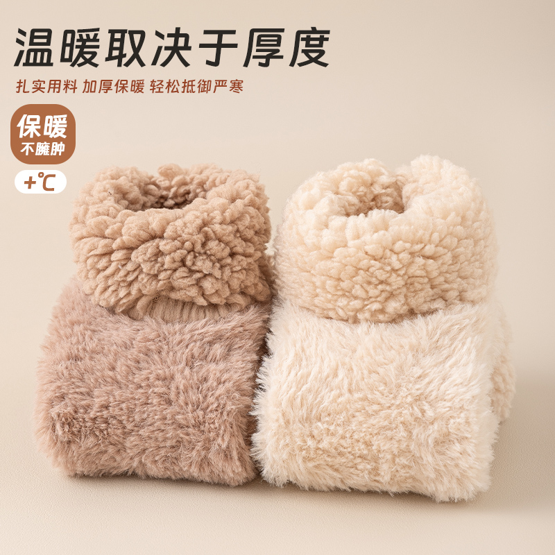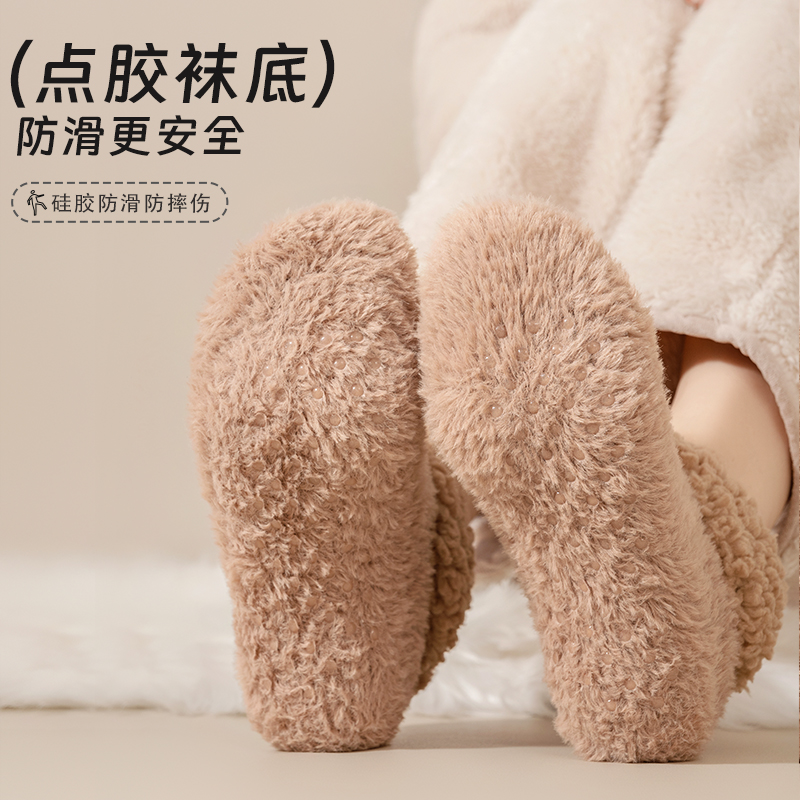羊羔绒袜子女秋冬天保暖加绒加厚防滑地板袜居家月子袜睡眠中筒袜