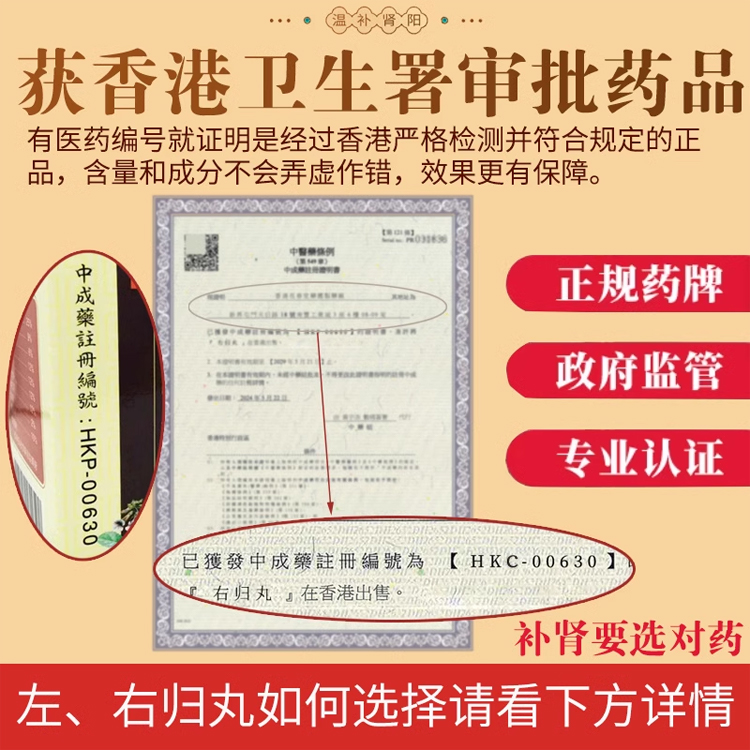 香港进口左右归丸补肾阳浓缩气丸怕冷阳痿正品 旗舰店非张仲景男女
