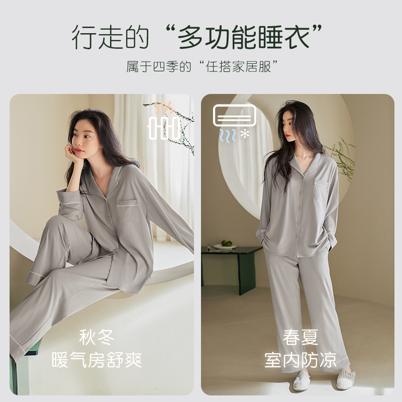 家居服秋冬套装 轩靓莫代尔棉睡衣女士春秋季 冰丝凉感大码 长袖 薄款