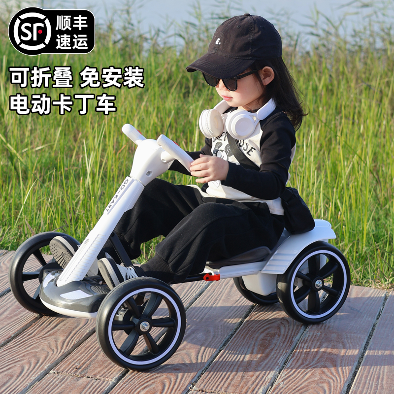 新款 儿童电动车折叠卡丁车可坐人男女孩宝宝遥控玩具电瓶车四轮车