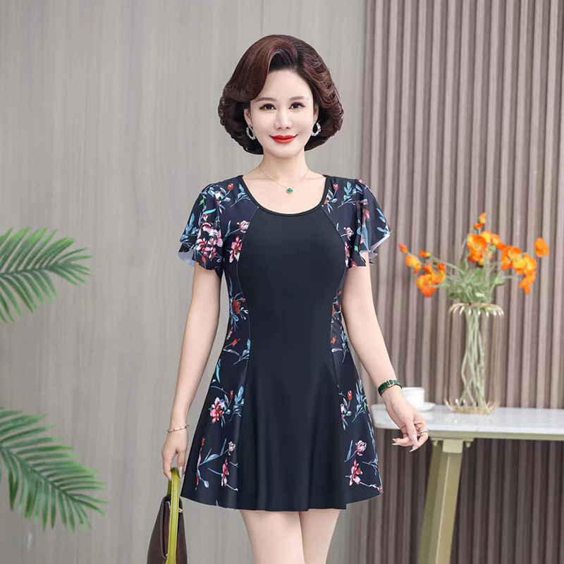 游泳装 大码 中老年遮肉显瘦泡温泉2024新款 妈妈泳衣女保守分体裙式
