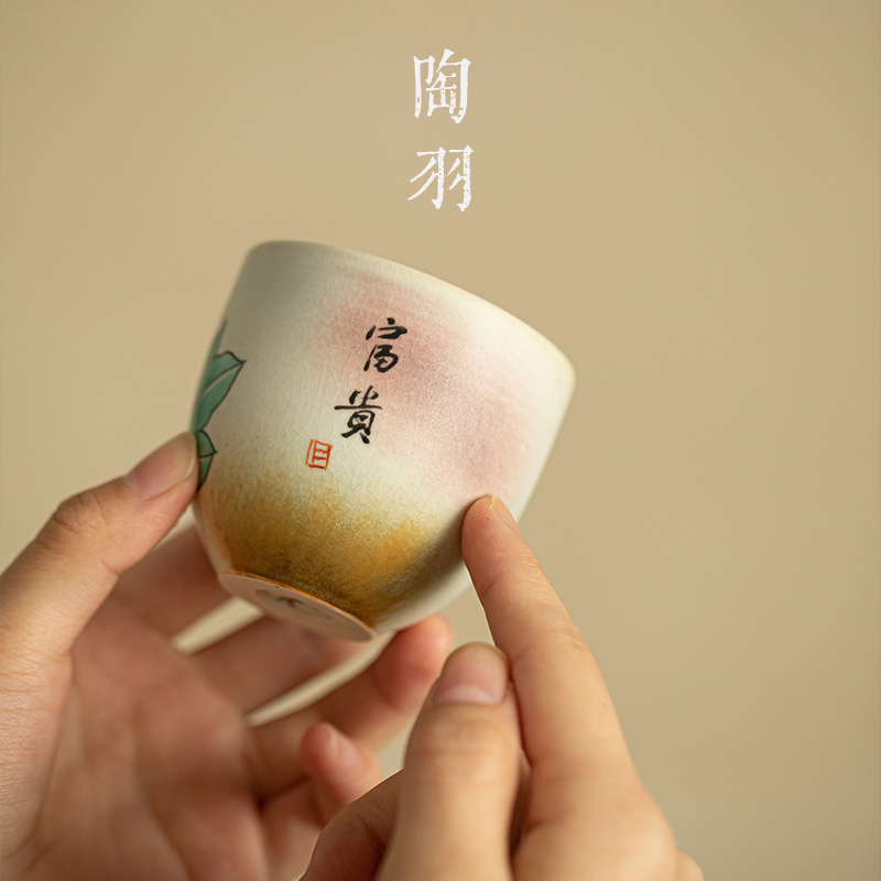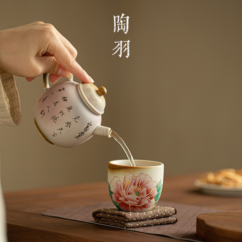 言仓线条小狗泡茶分离杯带滤托陶瓷水杯办公室茶杯生日礼物