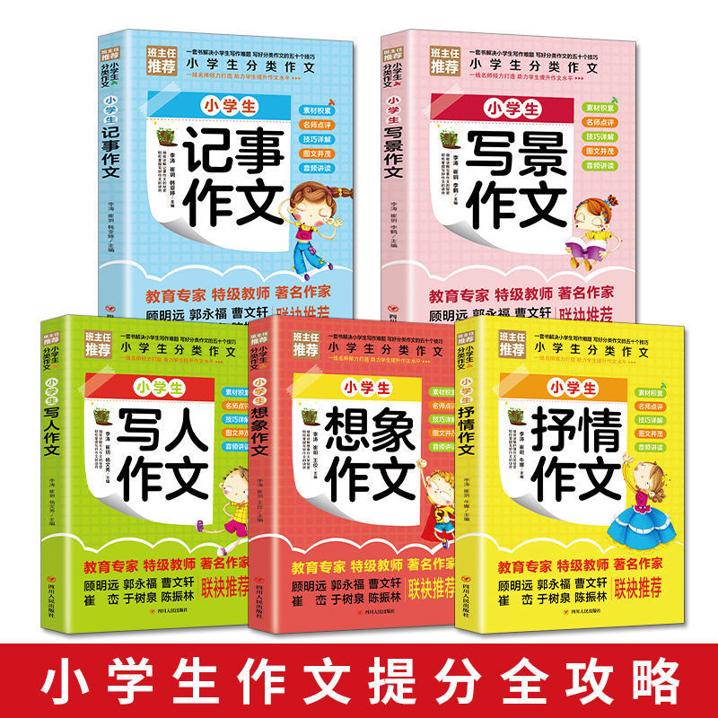 全5册小学生分类作文大全写景写人记事抒情想象作文精选同步作文掌握写作技巧小学生三四五六年级课外阅读书籍小学生看 儿童读物