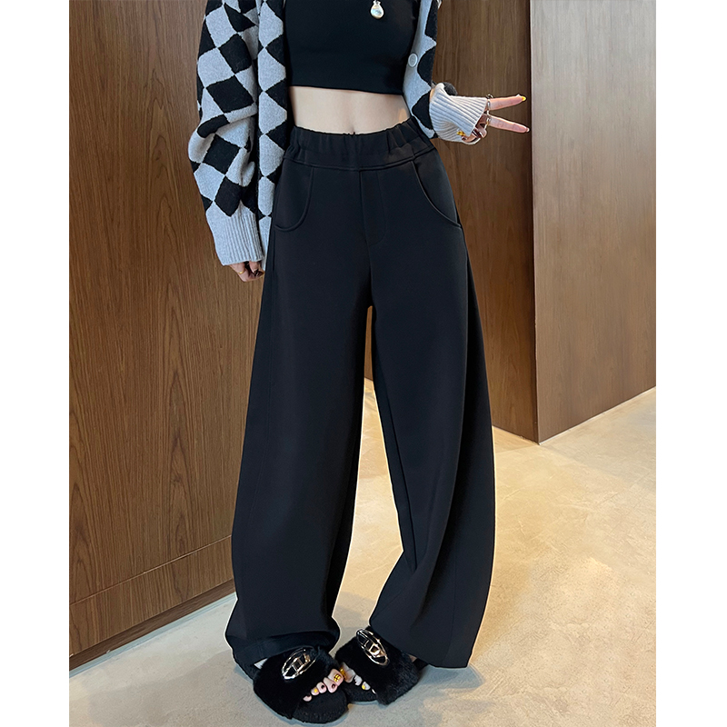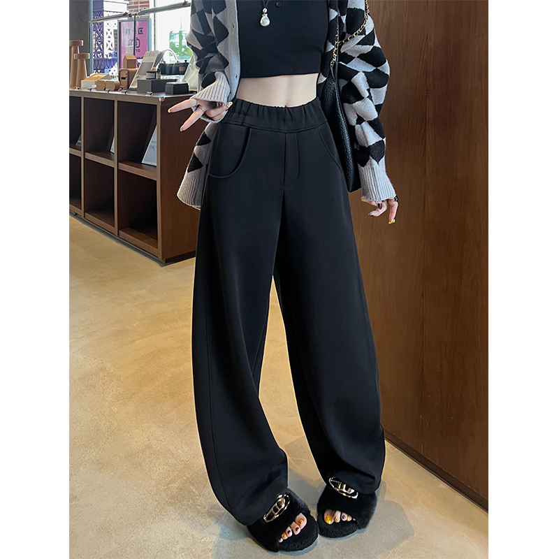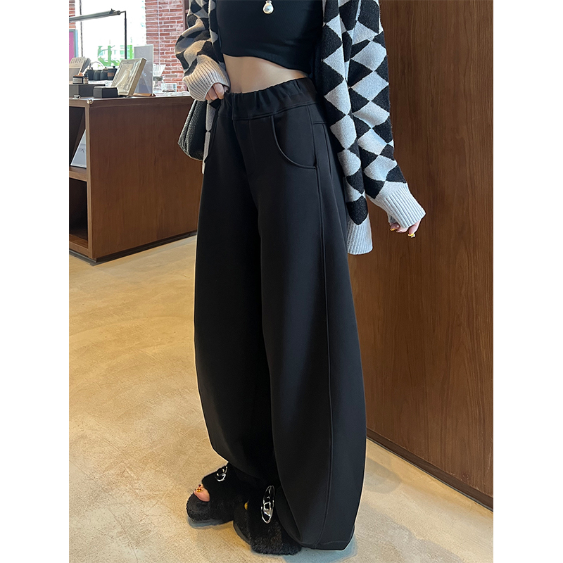 宽松直筒垂感休闲运动香蕉卫裤 弯刀裤 加绒阔腿裤 秋冬季 女2024新款