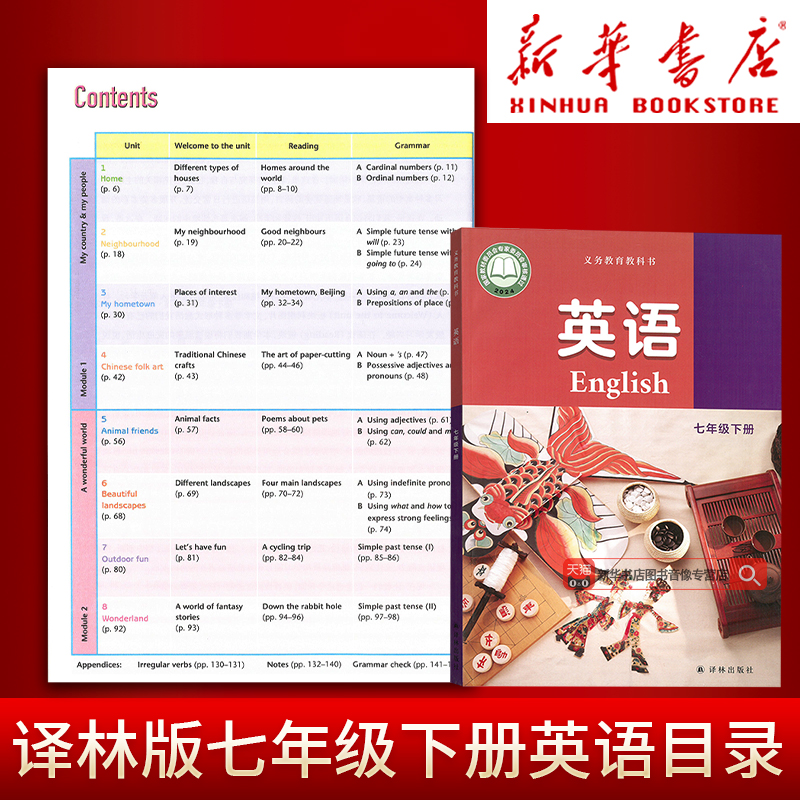 课本教材教科书7七年级英语书下册初一1下学期英语7七下英语译林出版 江苏省初中7七年级下册英语译林版 社 新华书店正版