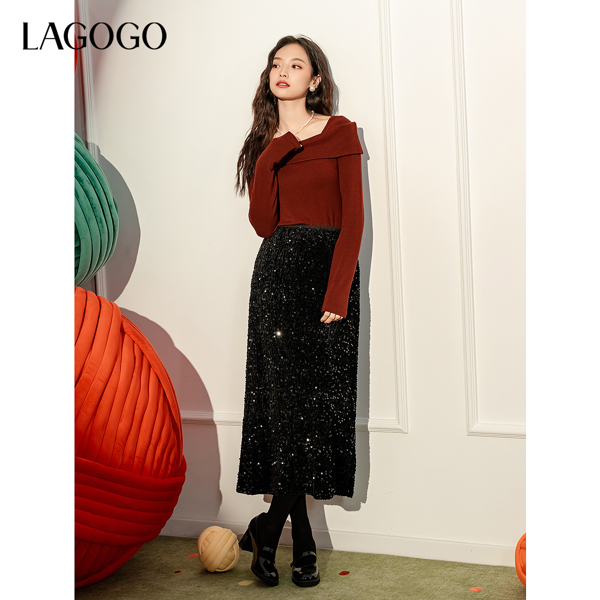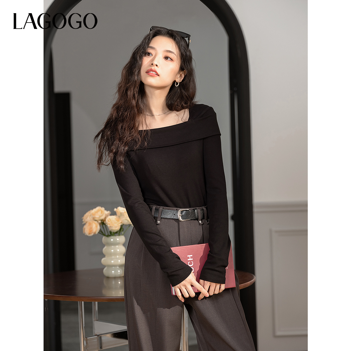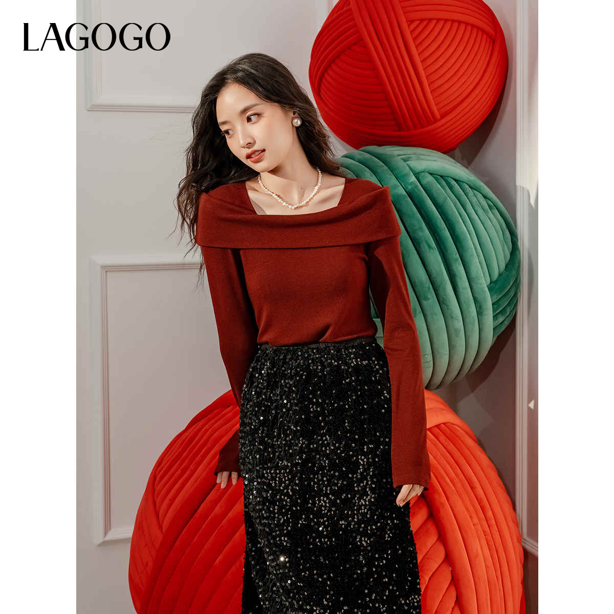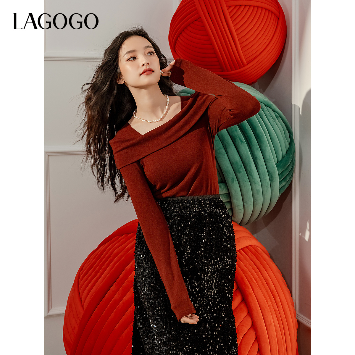高级感长袖 新款 T恤 上衣女拉谷谷2025年春秋季 LAGOGO红色简约修身