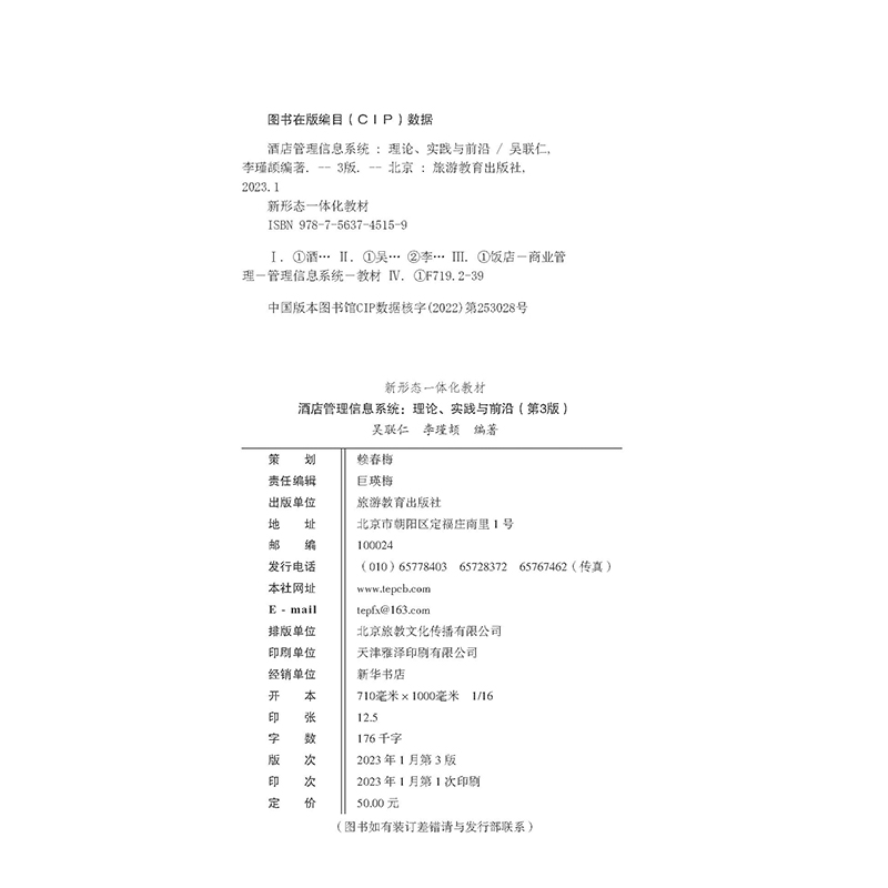 社 9787563745159新型态一体化教材旅游教育出版 酒店管理信息系统理论实践与前沿第3版 吴联仁李瑾颉主编23年版