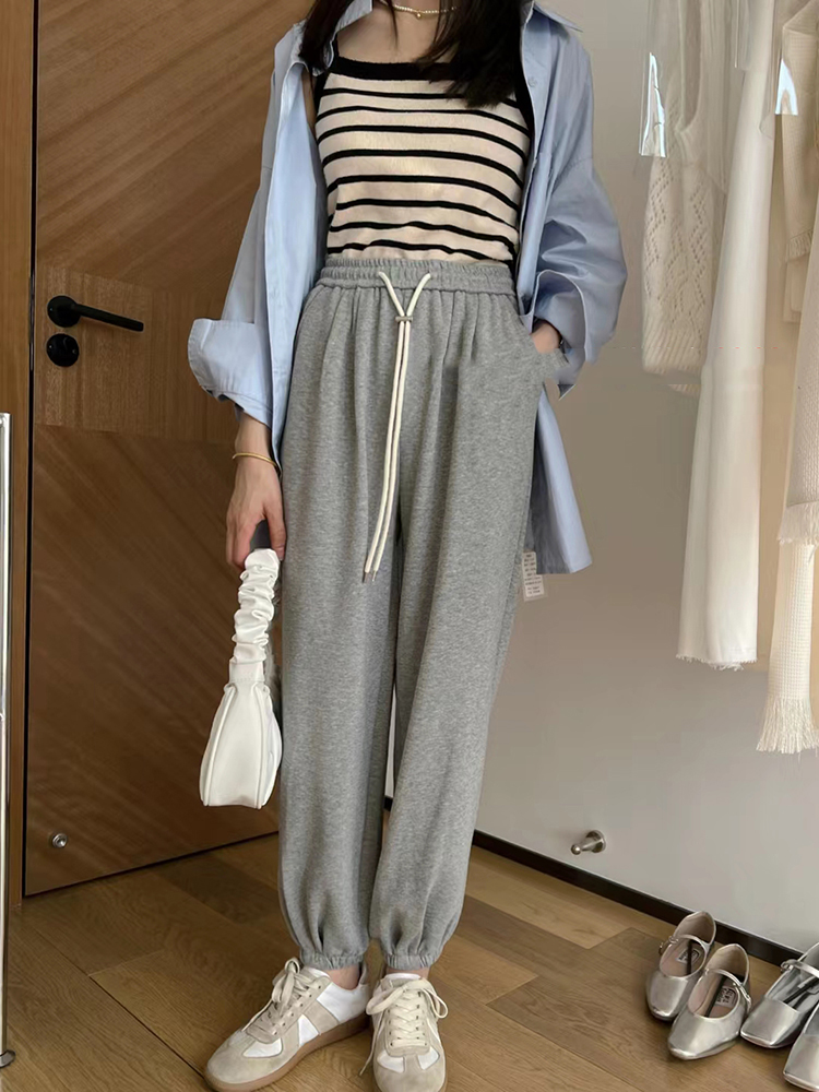 系带长裤 休闲裤 宽松百搭时尚 运动休闲束脚哈伦裤 潮 女2025春秋新款