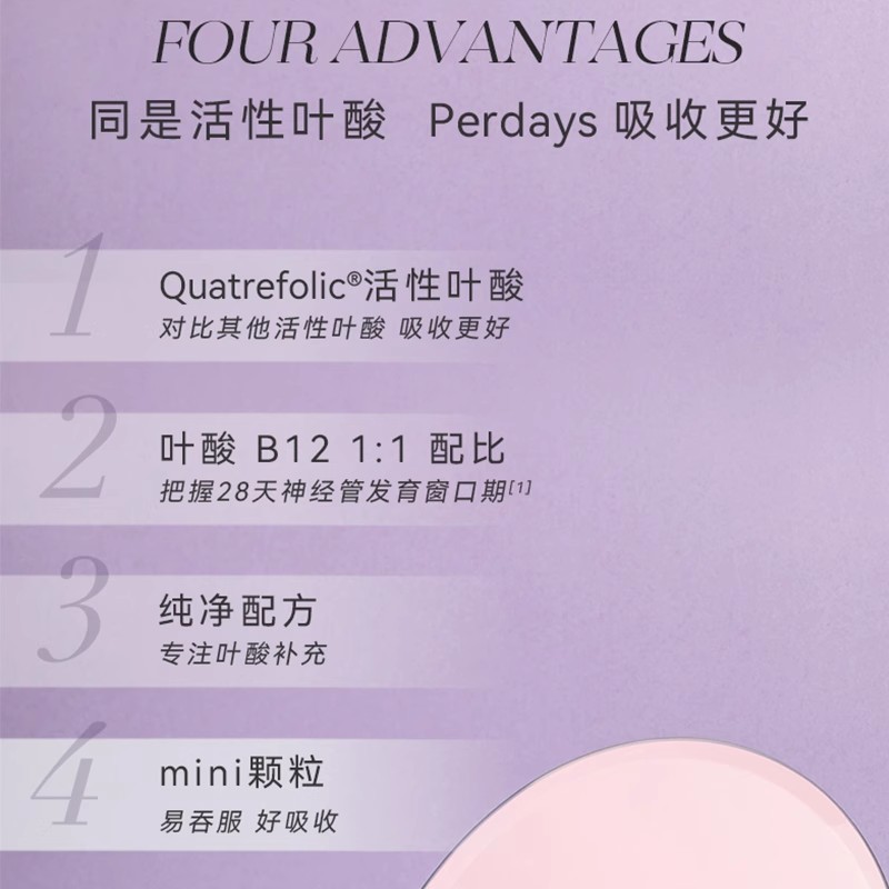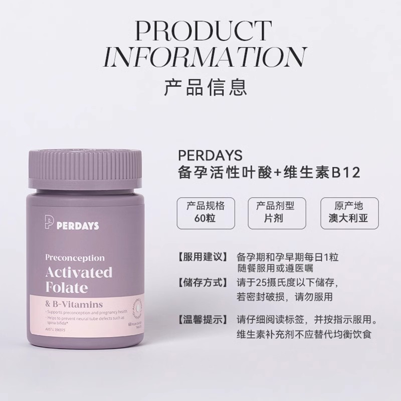 perdays备孕活性叶酸60片2月量孕前孕早期孕妇营养维生素