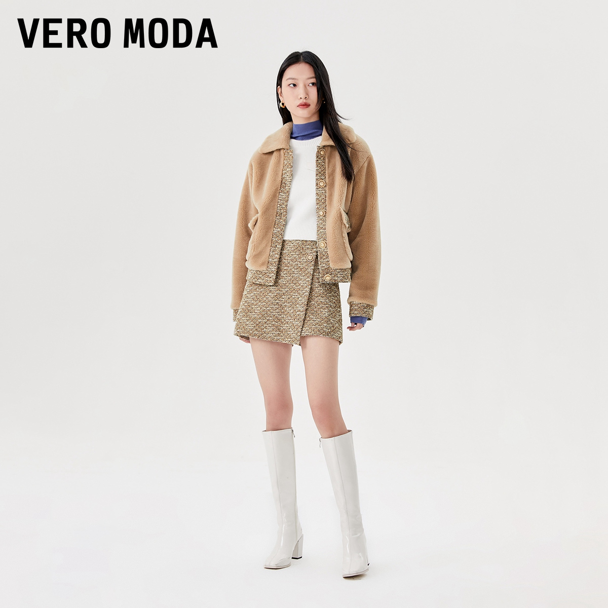 摇粒绒外套小香风上衣千金风气质开衫 女士短款 新款 雪中飞2025秋季