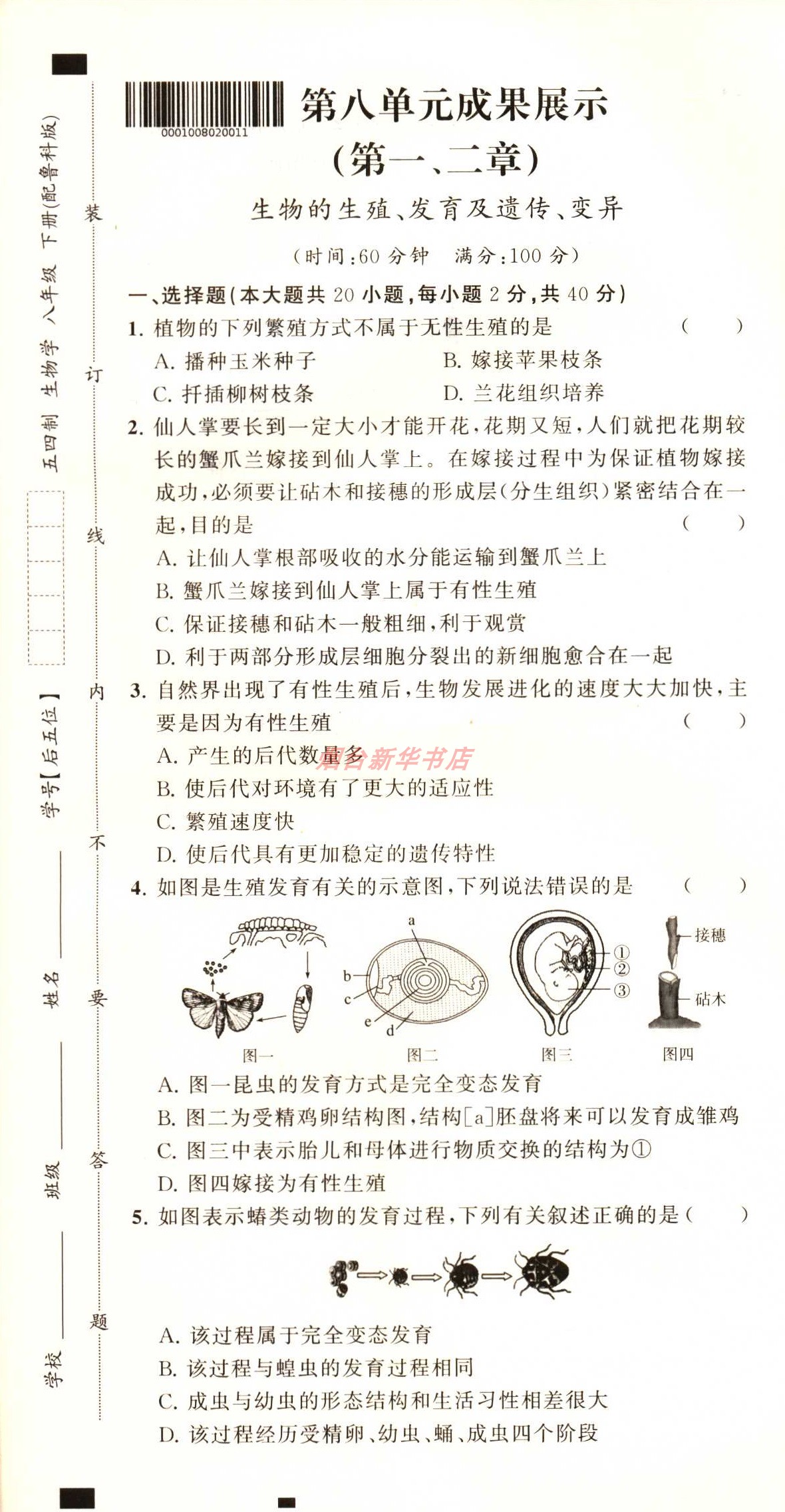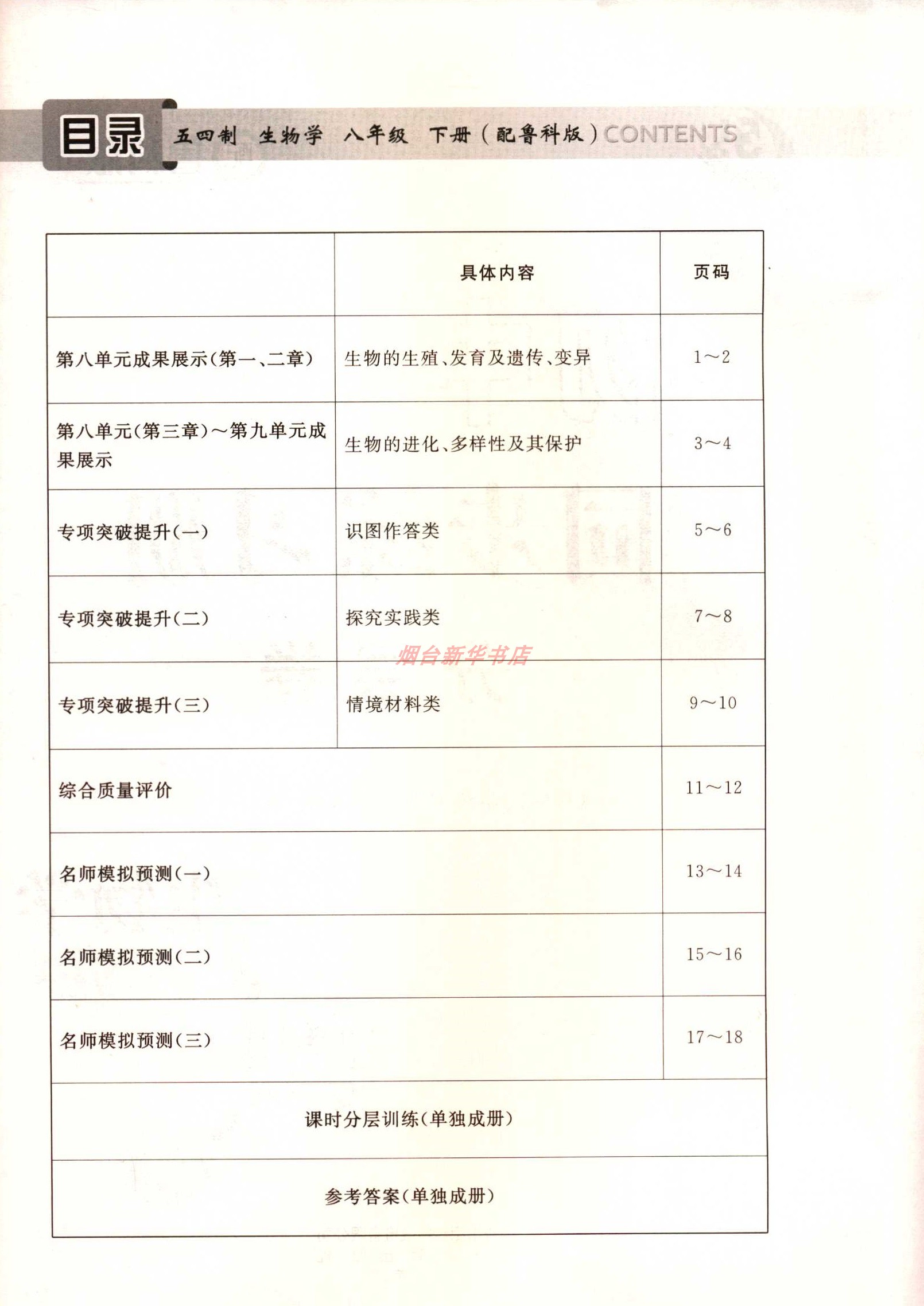 2023五四制生物学8八年级下册初中同步练习册分层卷配鲁科版 社 教辅山东教育出版
