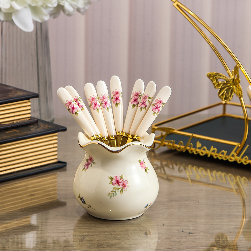 轻奢水果叉餐具不锈钢可爱创意收纳罐家用蛋糕水果盘叉水果签套装