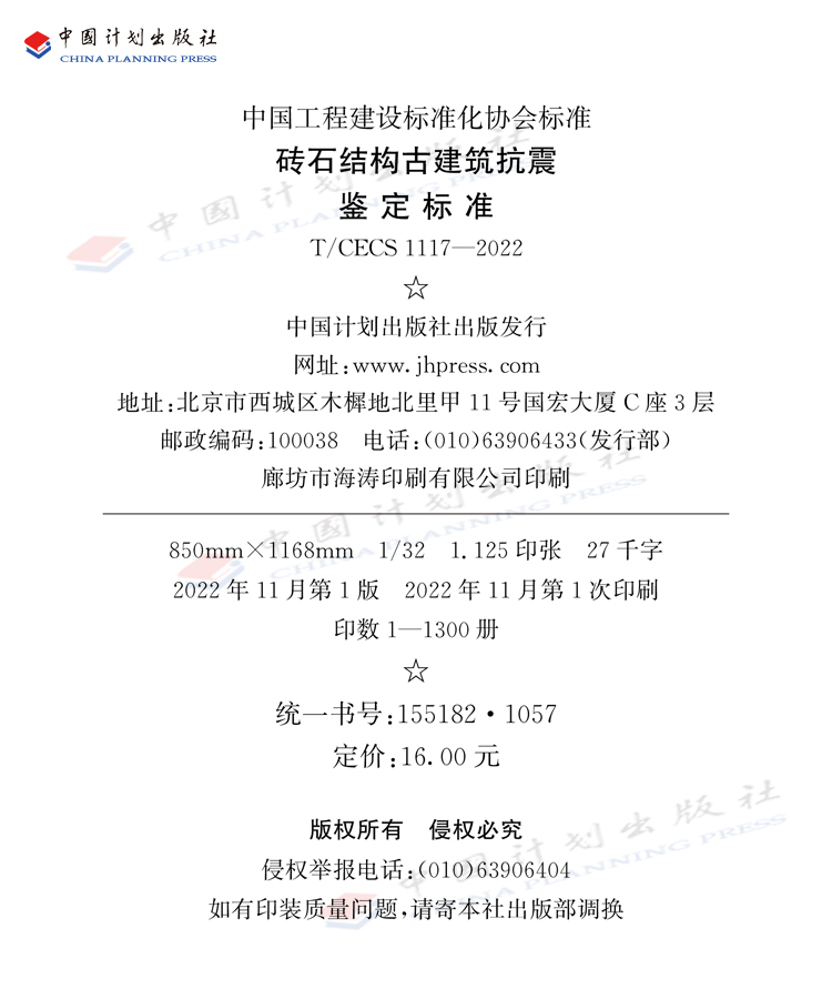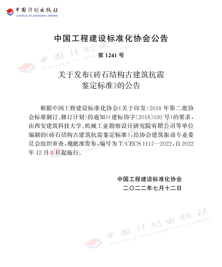 2022 1117 砖石结构古建筑抗震鉴定标准 CECS