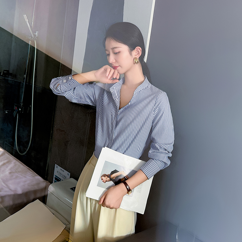 新款 女秋季 纯棉法兰绒极简风通勤翻领衬衣05345873 衬衫 佐丹奴长袖