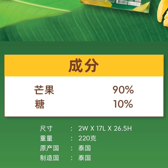 Kingpower低糖芒果干蜜饯220g泰国进口特产零食下午茶办公小零食