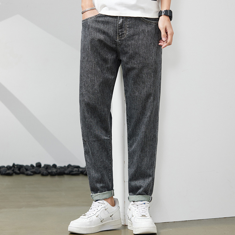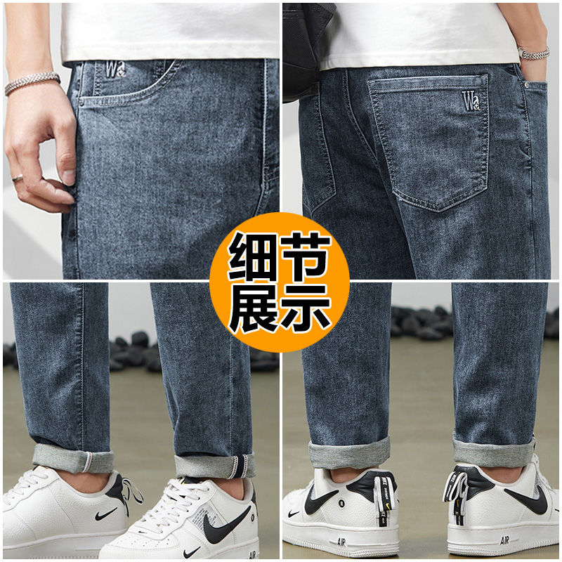 锥形长裤 复古水洗男士 子弹力春秋季 宽松直筒休闲潮牌九分裤 牛仔裤