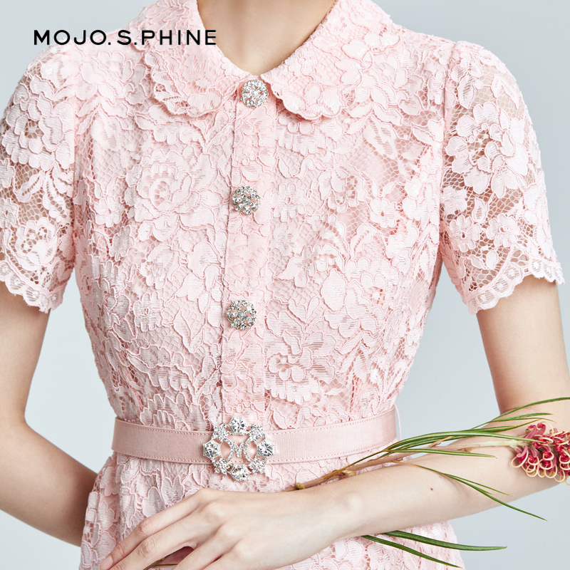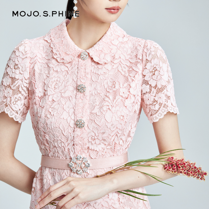 MOJO莫佐优雅浪漫韩国雕花蕾丝连衣裙2024年新款 中长裙 气质修身