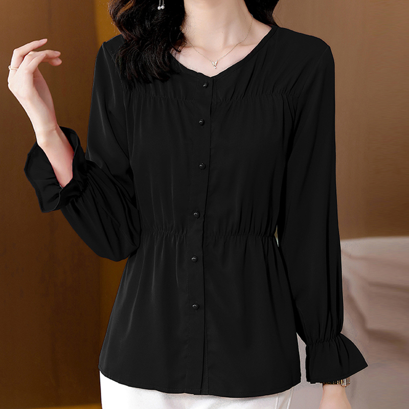 显瘦职业正装 秋冬长袖 OL工作服修身 女200斤胖MM大码 衬衣 黑色衬衫