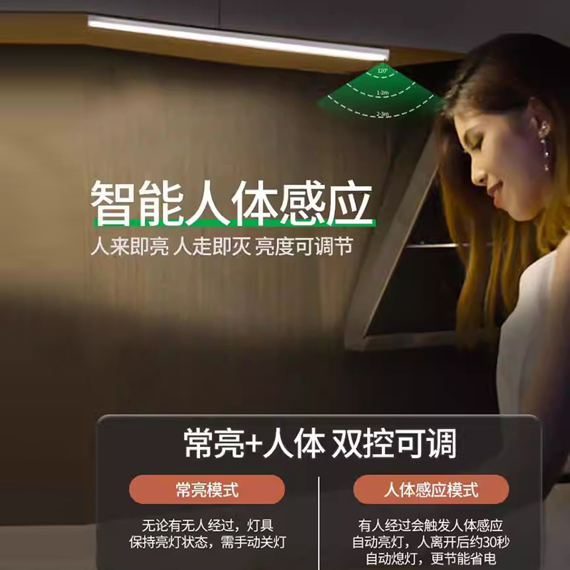 手扫感应灯充电式 led无线免布线厨房usb触摸衣柜灯条磁吸橱柜灯带