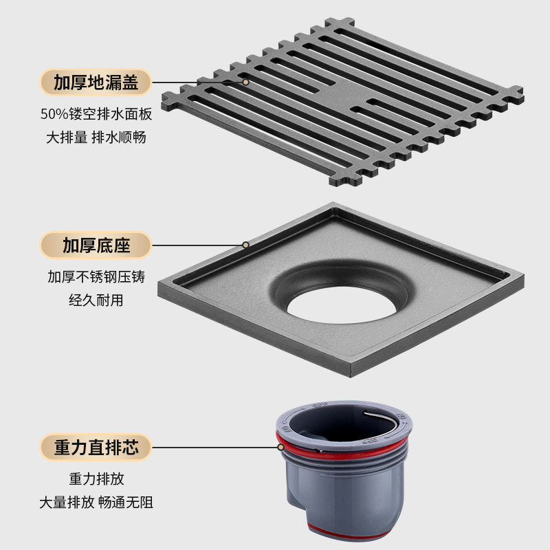 雨虹飞鱼全铜防臭地漏枪灰色卫生间淋浴洗衣机通用下水防返臭神器