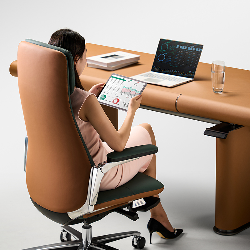 TOMU 登峰人体工学居家办公椅高档真皮办公会议老板椅 线下同款