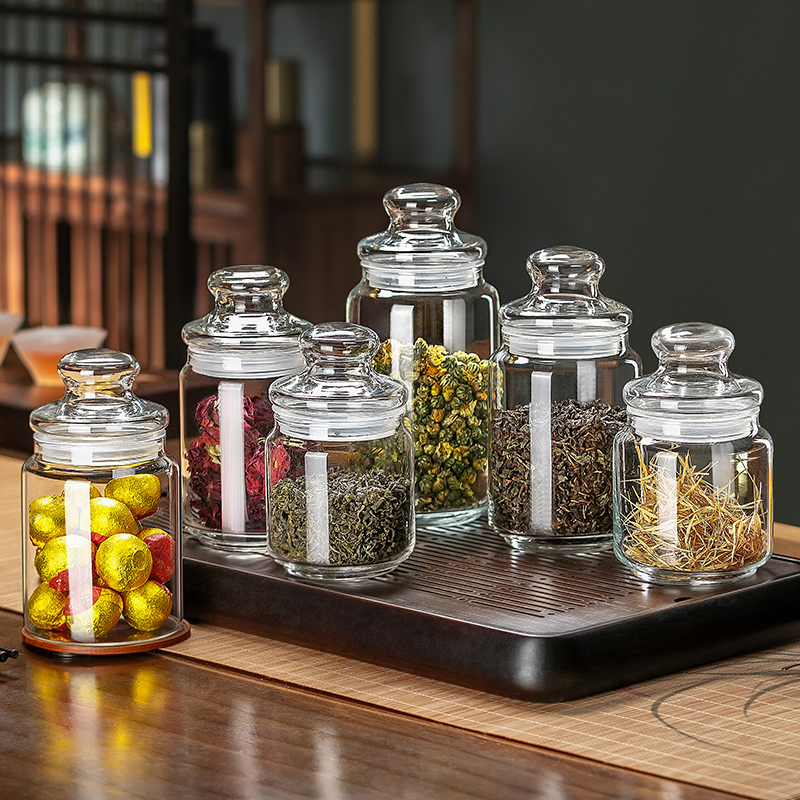玻璃密封罐食品级带盖家用厨房储存专用零食圆形透明防潮茶叶罐子