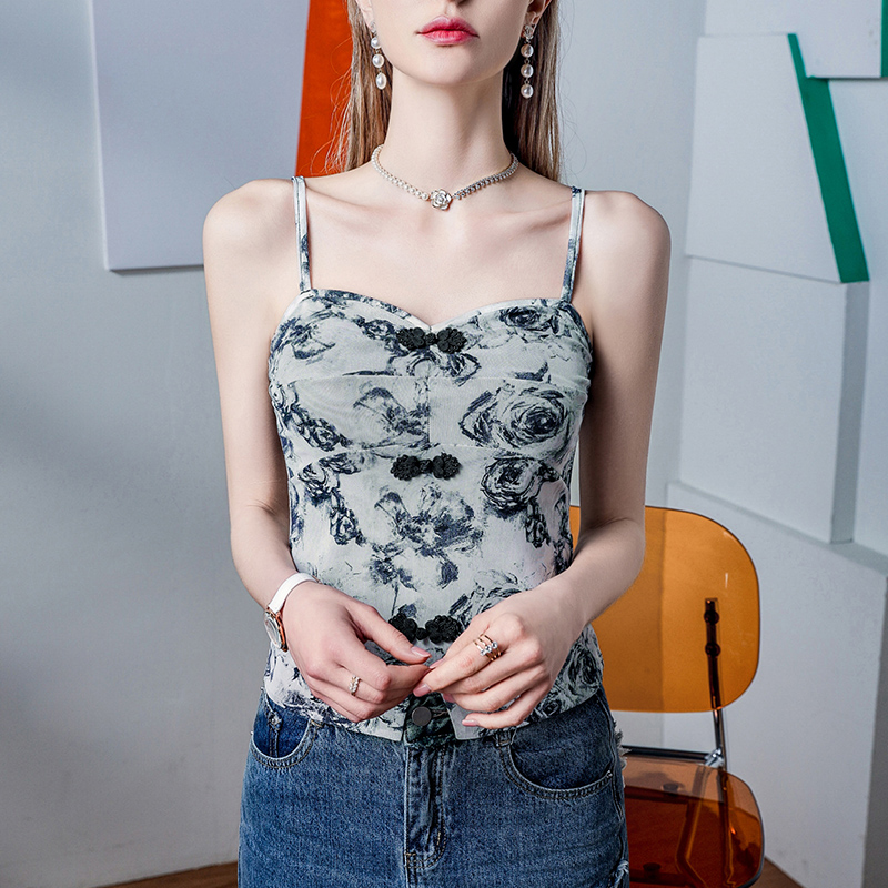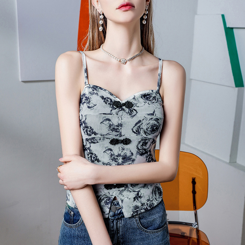 内搭 上衣西装 带胸垫春夏吊带背心女白色外穿字母印花短款 运动无袖