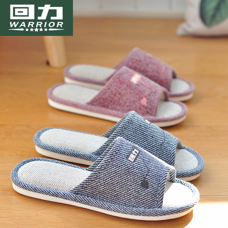四季 女士吸汗透气室内家居软底防滑耐磨棉麻男士 亚麻拖鞋 回力夏季